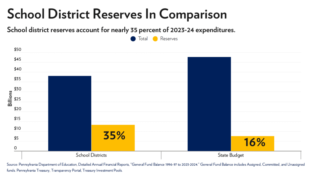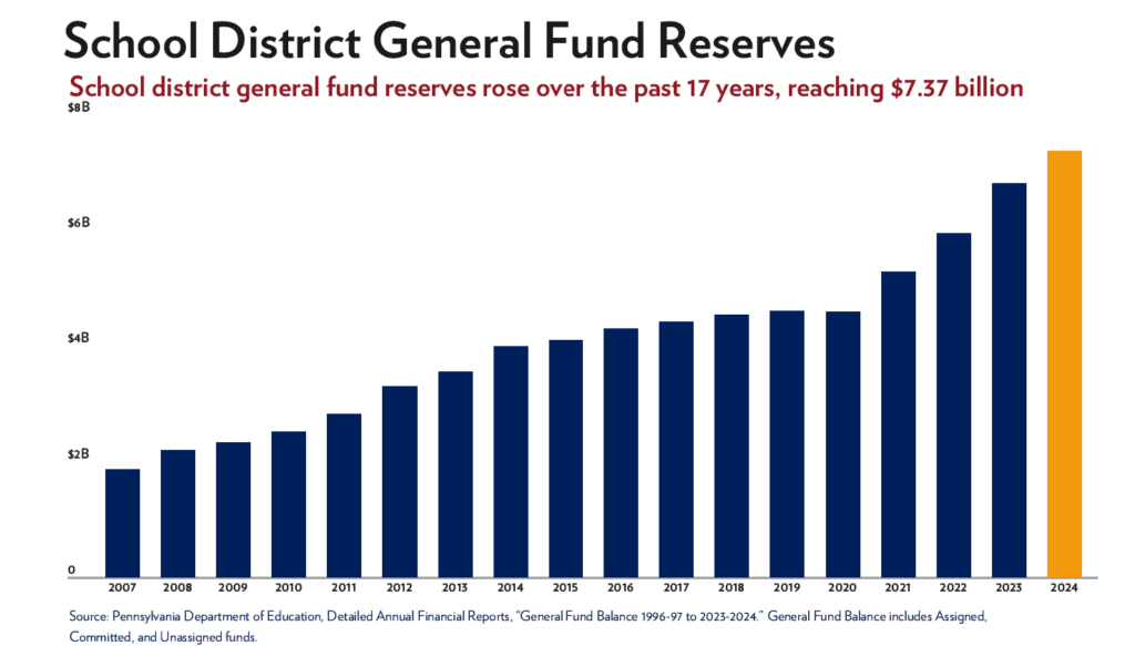 But many school districts exaggerate their claims of being “underfunded.” According to state data, Pennsylvania school districts are sitting on more than $13 billion in reserve funds—money they’ve saved up instead of spending on students.