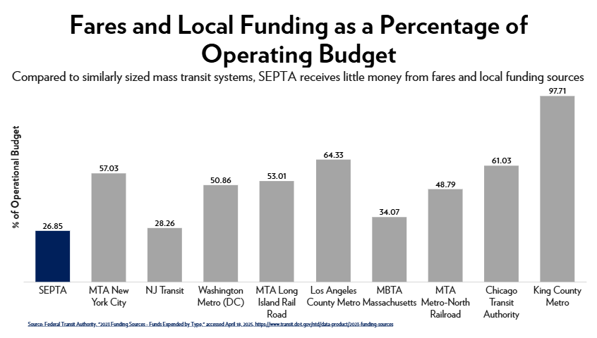 Fact: Pennsylvania’s mass transit, especially SEPTA, is more dependent on state funds than other major municipalities’ systems.